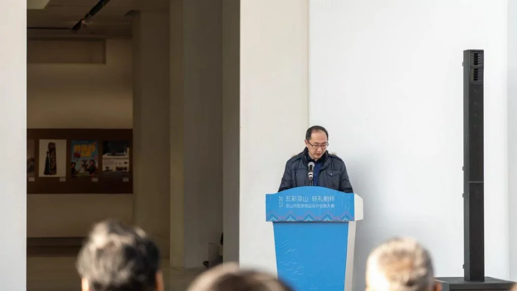 仪式伊始,司仪介绍到场嘉宾并邀请凉山州旅游协会会长陈劲致辞。随后,中国美术学院副教授、凉山乡土学院院长高文代表大赛评委,对参赛作品的创意与地域文化融合表现进行专业点评;凉山州法中公证处公证员刘川宣读大赛公证书,确保评选结果公平公正。